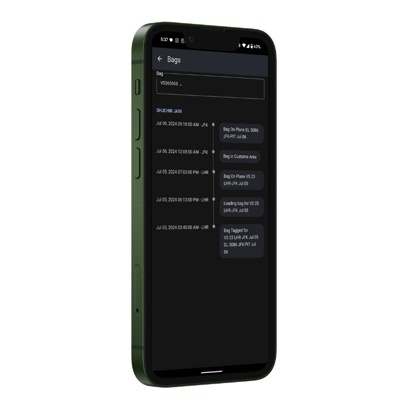 Scan a boarding pass to automatically track all checked-in bags associated with it. Currently only available for Delta and United flights.