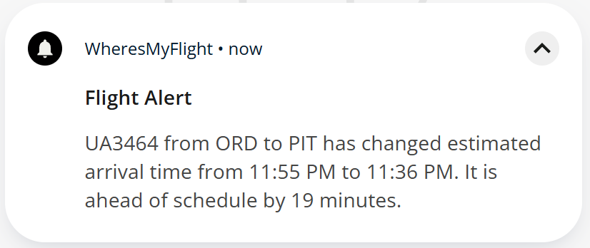 No data? No problem. Receive live flight updates via text message around the world. Currently available for US and Canada phone numbers only. ntfy is available as an alternate notification option for those outside NA.
